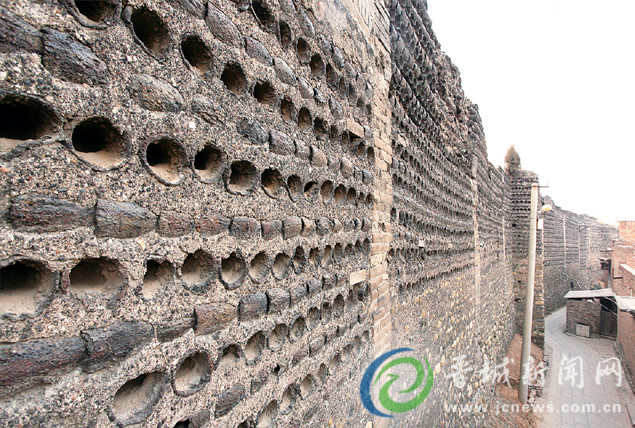 砥洎城外用青砖筑成,从外面看去与其他城墙没什么不同,而从城墙内看,就可以看到许多密密麻麻、整整齐齐排列的孔洞,与“蜂窝”十分相似。这种城墙极富特色,华北地区的瓮彻垒院墙或窑洞的结构虽然和它相似,但却少有这种精巧和细致,因此砥洎城也成为建筑学界极为重视的城堡式建筑。