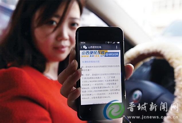 “春节期间,很多市民要开车出门探亲访友。急着见亲友的心情很容易导致超速驾驶等违法行为,甚至可能引发交通事故。”据市交警支队相关负责人介绍,为了帮助大家出行避免发生超速行为,日前山西公安交警网在官方微信公众服务平台“山西便民在线”开通了全省11个地市互通高速公路测速点段微信查询功能。