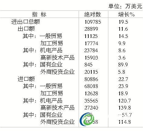 È«ÄêÈ«Êк£¹Ø½ø³ö¿Ú×ܶî11.0ÒÚÃÀÔª£¬Ôö³¤19.5%¡£ÆäÖУ¬½ø¿Ú¶î8.1ÒÚÃÀÔª£¬Ôö³¤22.7%£»³ö¿Ú¶î2.9ÒÚÃÀÔª£¬Ôö³¤11.6%¡£