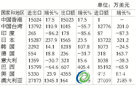 2014ÄêÓë½ú³ÇÓÐóÒ×ÍùÀ´µÄÖ÷Òª¹ú¼ÒºÍµØÇø½ø³ö¿ÚÇé¿ö