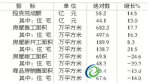 È«Äê·¿ÎÝпª¹¤Ãæ»ý189.9Íòƽ·½Ã×£¬Ôö³¤8.3%¡£ÆäÖУ¬×¡Õ¬Ð¿ª¹¤Ãæ»ý138.7Íòƽ·½Ã×£¬Ôö³¤21.5%¡£ÉÌÆ··¿ÏúÊÛÃæ»ý75.4Íòƽ·½Ã×£¬Ï½µ13.0%¡£ÆäÖУ¬×¡Õ¬ÏúÊÛÃæ»ý67.6Íòƽ·½Ã×£¬Ï½µ14.0%¡£ÉÌÆ··¿ÏúÊÛ¶î34.1ÒÚÔª£¬Ï½µ11.2%¡£ÆäÖУ¬×¡Õ¬ÏúÊÛ¶î29.2ÒÚÔª£¬Ï½µ11.8%¡£·¿µØ²ú¿ª·¢ÆóÒµÍÁµØ¹ºÖÃÃæ»ý39.6Íòƽ·½Ã×£¬Ï½µ24.9%¡£·¿µØ²ú¿ª·¢ÆóÒµ±¾Äêʵ¼Êµ½Î»×ʽðºÏ¼Æ81.5ÒÚÔª£¬Ôö³¤23.5%¡£ÆäÖУ¬¹úÄÚ´û¿îÔö³¤67.5%£¬×Ô³ï×ʽðϽµ7.9%£¬ÆäËû×ʽðÔö³¤53.0%¡£