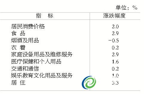 ¾ÓÃñÏû·Ñ¼Û¸ñ±ÈÉÏÄêÉÏÕÇ2.0%¡£ÆäÖУ¬Ê³Æ·¼Û¸ñÉÏÕÇ2.9%¡£ÉÌÆ·ÁãÊÛ¼Û¸ñÉÏÕÇ0.8%¡£¹¤ÒµÉú²úÕß³ö³§¼Û¸ñϽµ8.2%£¬¹¤ÒµÉú²úÕß¹º½ø¼Û¸ñϽµ5.9%¡£