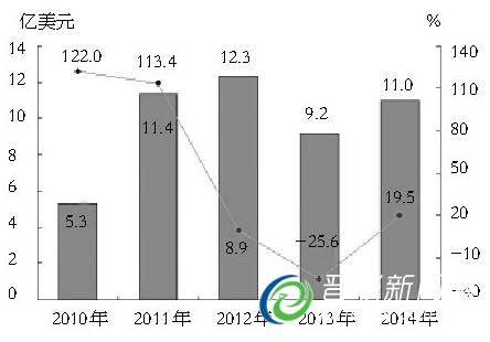 2010-2014ÄêÍâó½ø³ö¿Ú×ܶÔö³¤ËÙ¶È
