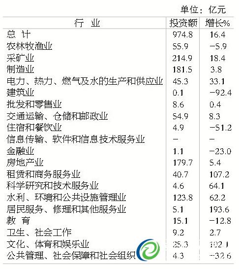 È«ÄêÈ«Êй̶¨×ʲúͶ×ÊÍê³É974.8ÒÚÔª£¬Ôö³¤16.4%¡£ÆäÖУ¬¹úÓм°¹úÓпعÉͶ×Ê449.2ÒÚÔª£¬Ôö³¤29.4%£»¸Û°Ą̈¼°ÍâÉÌͶ×Ê53.4ÒÚÔª£¬Ôö³¤37.3%£»Ãñ¼äͶ×Ê472.2ÒÚÔª£¬Ôö³¤4.6%¡£