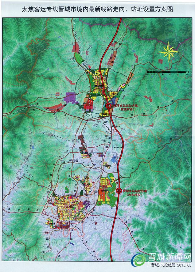 太焦客运专线晋城市境内最新线路走向、站址设置方案图。