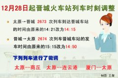 12月28日起晋城市部分列车时刻调整