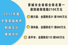 晋城市获县级财政绩效评价激励奖2100万元