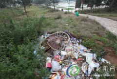 白马寺山森林公园林间小道上堆着不少的垃圾