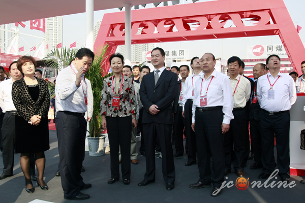 在晋煤集团金鼎煤机展区,市领导认真察看了企业展厅及产品,并与参展企业负责人亲切交谈,了解展会期间合作洽谈情况。